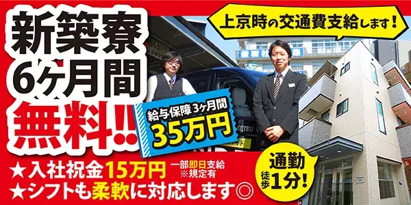 - タクシードライバー 企業祝金20万円&入社支援/6ヶ月給与保証/寮完備